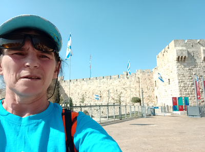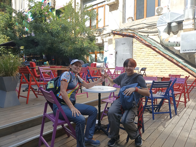 Головна мета подорожі - зустріч Тусі з "Беретного походу" та церемонія вручення померанчових беретів. Ми її спочатку взагалі не побачили, потім Сашко угледів. На фото - несе носилки в задньому ряду